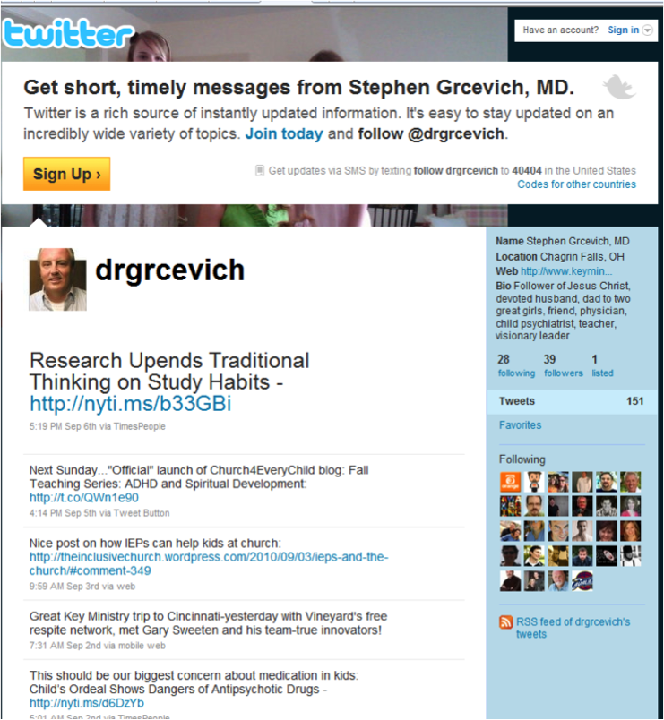 highlights new research of interest to families of kids with mental disorders and those who serve them. I’ll occasionally feature links to other stuff I’m reading or leaders with interesting perspectives. If you’re a parent or a professional interested in the stuff we address, or you’re not involved with leading or serving in a local church, my Twitter feed will probably be the best way to keep up with Key Ministry. I promise not to Tweet every time I sit down at Panera, one of my kids does something impressive or my wife wears something that looks nice. Warning! If you become my Facebook friend you will be subjected to my venting about the futility of Cleveland sports or the parallels between the descent of our society and Jerusalem pre-Nebuchadnezzar. Key Ministry’s Twitter feed will feature content similar to our Facebook fan page.