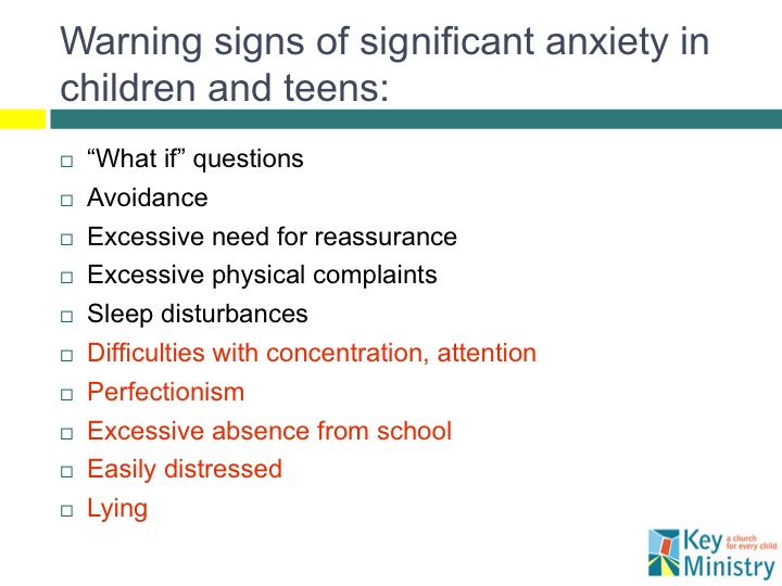 Welcome to our Summer Blog Series examining the impact of anxiety disorders on church participation and spiritual development in kids. Today…we’ll complete our look at signs church staff, volunteers and parents might observe in the child struggling with anxiety.