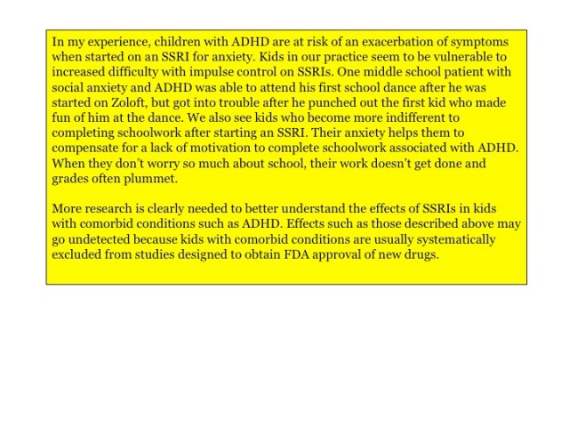 In the 30 or so well-designed research studies involving approximately 5,500 children and teens evaluating the safety and effectiveness of SSRIs, there have been zero completed suicide attempts.
