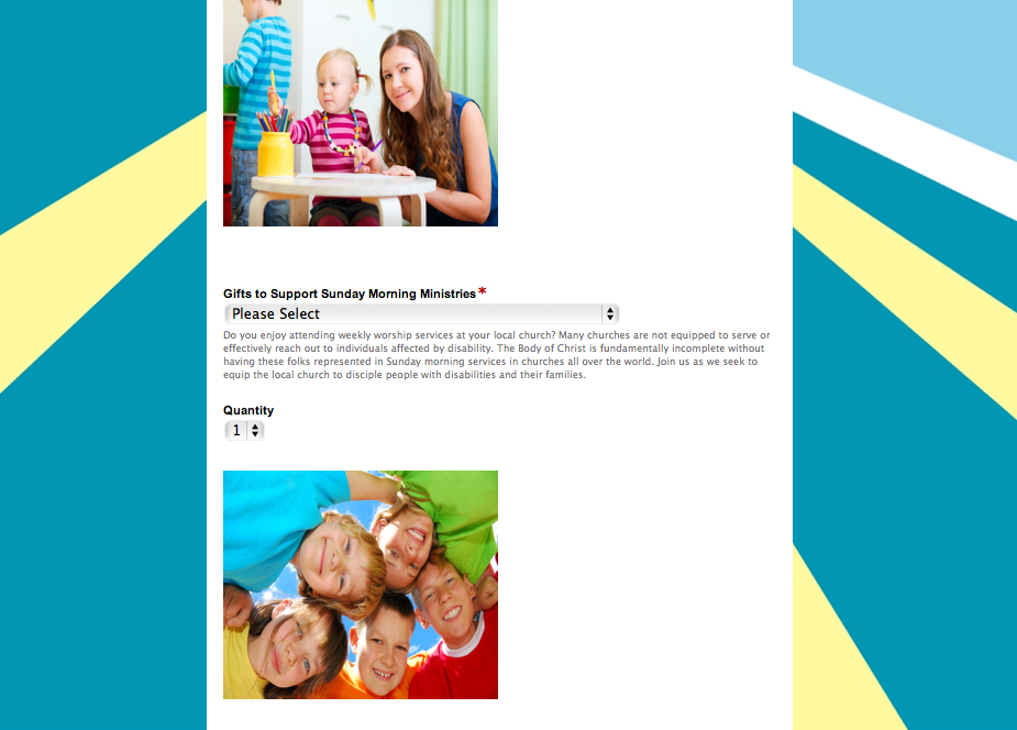 - Fifty $1.00 gifts provide a two-hour onsite observation at a church serving families touched by disabilities.