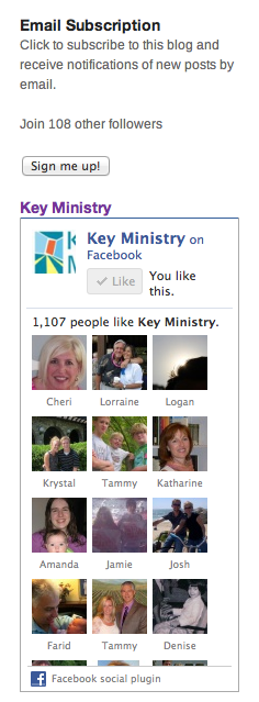 Help us get the word out! Please let any friends and interested church staff with interest in serving kids and families with disabilities know about the blog and the free training, resources, consultation and support available through Key Ministry. You can subscribe to the blog through the link on the right sidebar (pictured left).