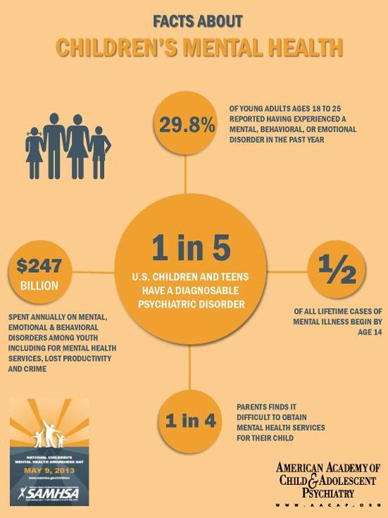 I’m guest blogging today for family therapy guru and all-around good guy Joe McGinnis on the theme A Different Way of Thinking About Kids and Mental Illness…check out Joe’s blog by clicking here. I thought I’d keep it simple today and share this graphic for you from the American Academy of Child and Adolescent Psychiatry…