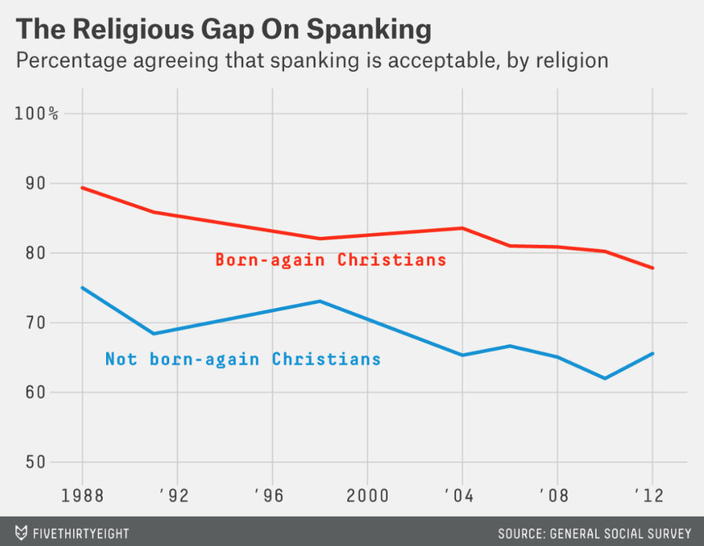 Americans in general to view spanking as an acceptable discipline strategy with children. (see right, from FiveThirtyEight).