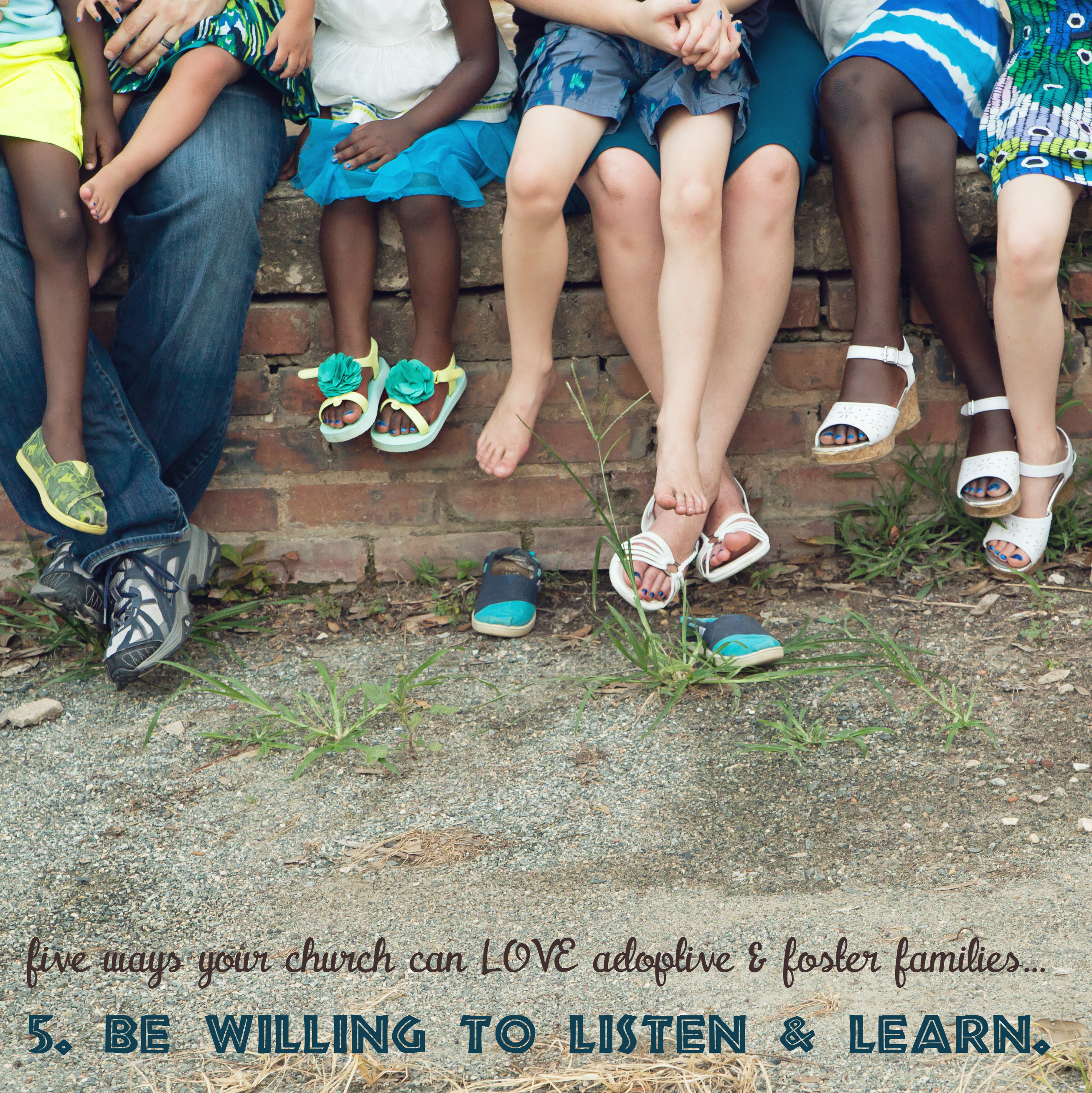 - Listen to the challenges we encounter as adoptive and foster families, such as being conspicuous in public due to adopting or fostering a child of a different race, considering dissolution or disruption of a child’s placement within our family in favor of another family who might be better equipped to meet the child’s needs, losing friends or family who don’t agree with our choice to adopt or foster, and struggling with the special needs of our child, whether known before placement or presenting as a surprise post-placement. As you listen, remember that we are flawed and human rather than saints or idols.