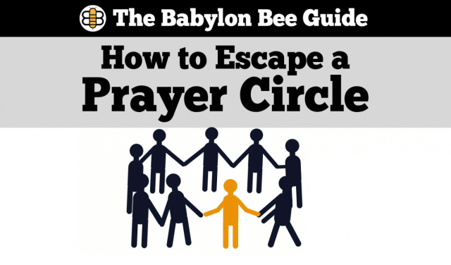 Or, my favorite… Churchgoer Leaps Through Window to Escape Holding Hands in Prayer Circle