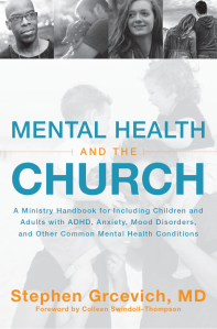 In Mental Health and the Church: A Ministry Handbook for Including Children and Adults with ADHD, Anxiety, Mood Disorders, and Other Common Mental Health Conditions, Dr. Stephen Grcevich presents a simple and flexible model for mental health inclusion ministry for implementation by churches of all sizes, denominations, and organizational styles. The book is also designed to be a useful resource for parents, grandparents and spouses seeking to promote the spiritual growth of loved ones with mental illness. Available now at Amazon, Barnes and Noble, ChristianBook and other fine retailers everywhere.